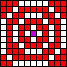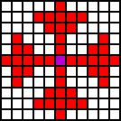 Purple Tiles are where the caster is standing, Blue Tiles are where the caster's target is (No blue tile means the position of the target is irrelevant), and Red Tiles are the spell's reach. they always include the target's tile (For targeted spells).